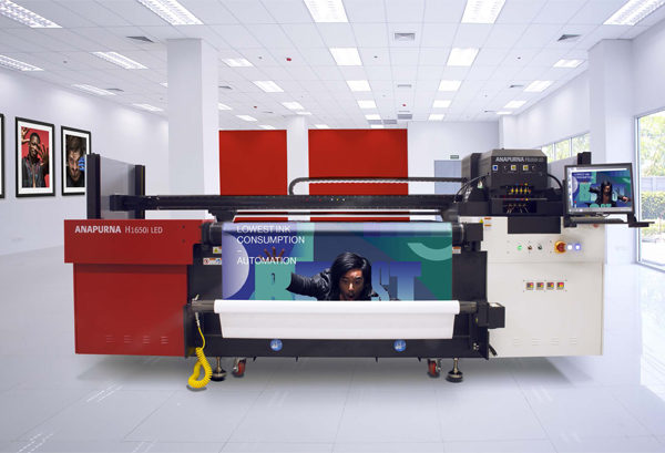 La Anapurna H1650i LED cuenta con un sistema de inyección de tinta de alta velocidad híbrida LED UV curable con un ancho de impresión de 1,65 m para aplicaciones en interior y exterior. 160 cm para impresión sin bordes